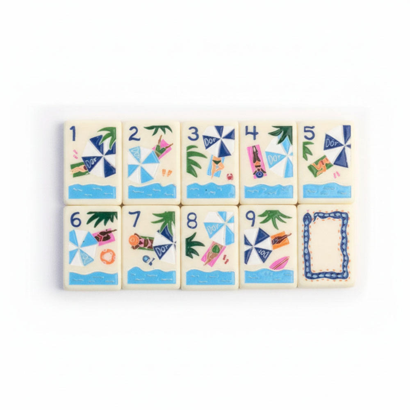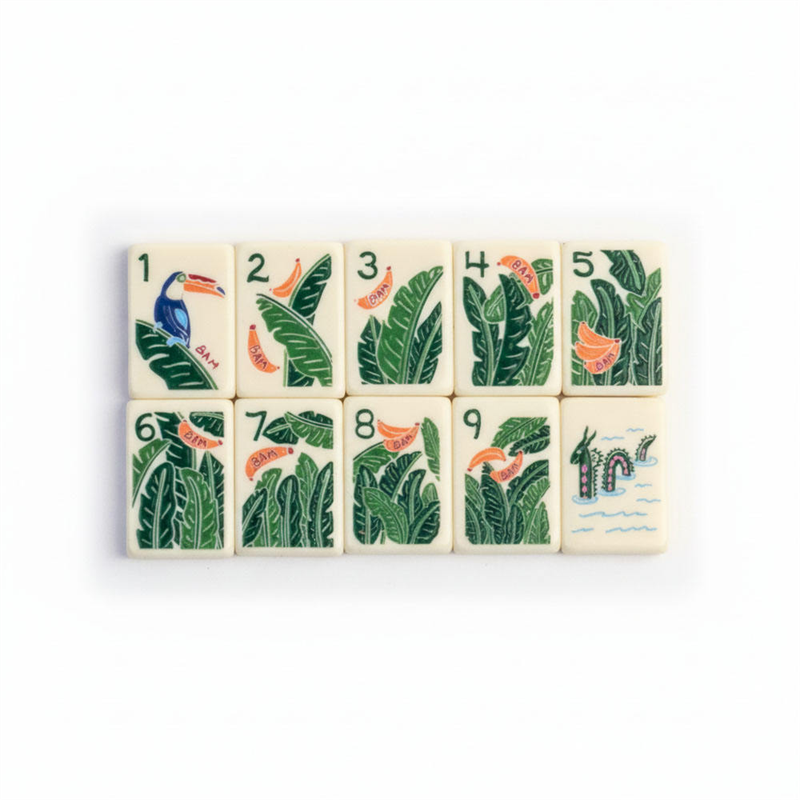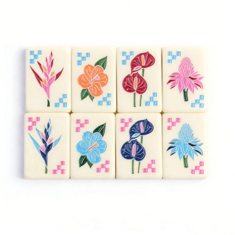 • Tropical Vacation Style Mahjong Set 166 Tiles Unique Illustrated Pineapple Flamingo Melamine Mahjong Tiles for Summer Party